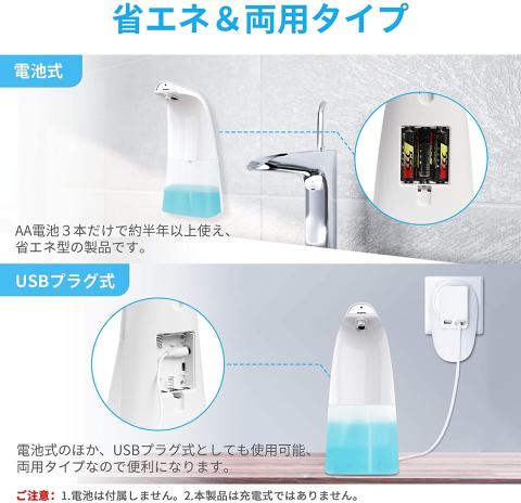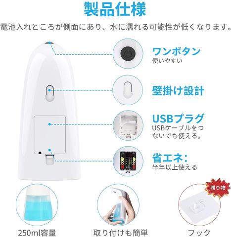 USB充電式じゃなくて、USB電源式のソープディスペンサーって全然無いのが不思議です。
