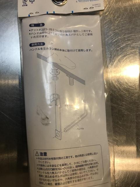 左端の開放レンチを洗面台の裏側に有るナットにはめ込みます