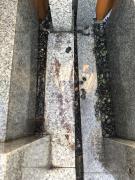 墓地を洗剤で汚すことなく、水だけで、そして短時間で、墓石自体や彫刻の中に溜まった黒カビを