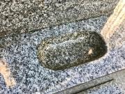 ◯◯家と掘られている部分に堆積している黒カビを 洗剤を使わずに取り除けるのではないか?