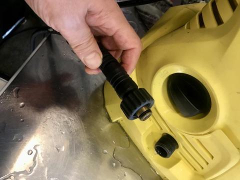 ホームキットの場合は、本体と高圧ホースはネジでコネクトするのですが コレが固くて