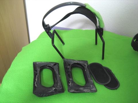 イヤーパッドを剥がしたところですが、去年両面テープを剥がして新しく貼りなおしています 年数が経つと接着が緩くなり如何にもなりません。