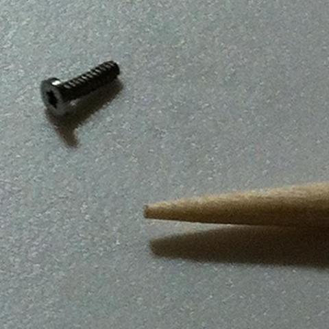 そんな小さいネジってナカナカ……と探していたらイケそうなのを見付けました、それはiPhopneのライトニング脇の「星型のネジ(ペンタローブ)」です、タマタマです(同じ大きさのネジであれば何でも良いでしょう)ちなみに「iPhone4」で使っていたネジです。
