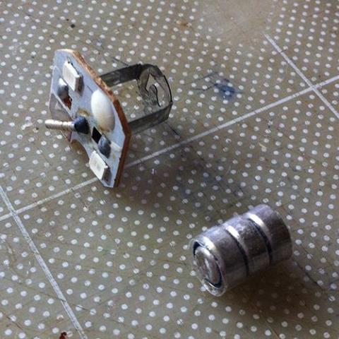 イロイロと考えた結果、小さいネジをバネ(コイル状)の先端に挿せばそれが重りになってスイッチの反応が敏感になる筈…