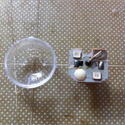 割れたら発光装置は簡単に外せました(電池も)、そのボタン電池は直列に3個重なっていてバラバラにならないように、シュリンク?されていました。
