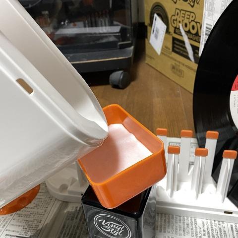さて7枚洗浄が終わると乾くまで時間があるし乾かすスペースもないしで残りのレコードは明日の楽しみとして洗浄液の回収作業に移ります。