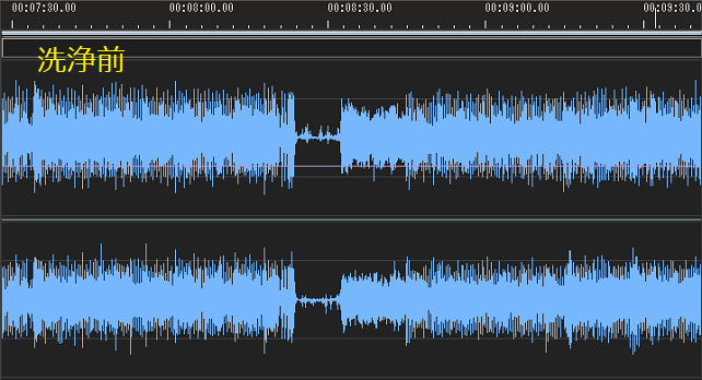 洗浄前と洗浄後の音楽を聴き比べてみましたが、曲間のノイズが見ての通りとなりました。