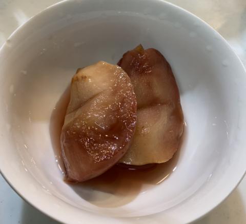 ↑リンゴのコンポート。ヨーグルトを添えるとさらにおいしい