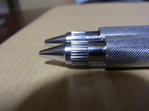 使い心地はやはりノックして芯が出るだけの単機能で金属ボディ、金属グリップの