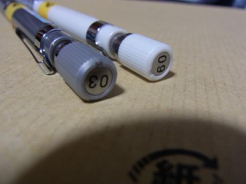 〇芯の送り出し量が0.9mmが10ノックで7.2mmで0.3mmが4.5mmで