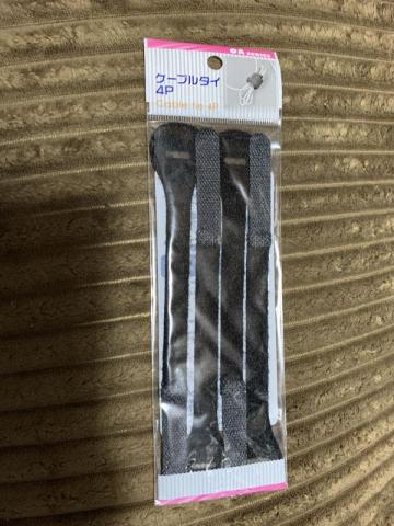 欠品だったバンドの代わりには、100均ショップでケーブルタイを買ってきました。丁度4本入りでしたので、片側2本ずつで使えますからね。