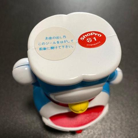 硬貨を取り出すには足のウラの封印シールを剥がして↓↓「パカッ」と開けます。