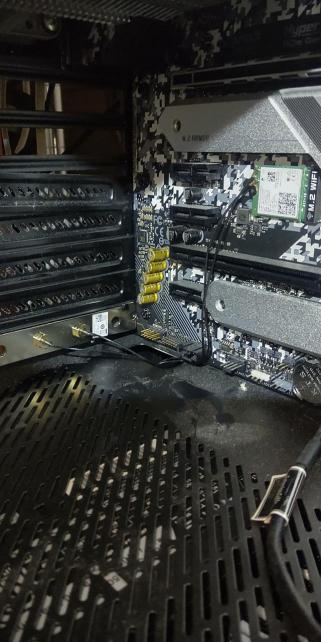 ⑥、AX200・ケーブル付きブラケットを取り付け(余ったケーブルを適当に逃がす)、グラボを付け直す。