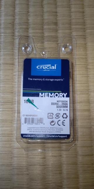 先日購入したノートPCのメモリが4GBしかないんでそれの増設用に購入しました。