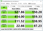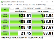 M.2 SATA3接続ではリード530MB程度、ライト400~500MB程度といわゆるSATA3接続の性能ですね。
