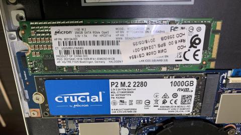 ※上段が取り外したM.2 SATA3接続のCrucial(Micron)のMTFDDAV256TBN-1AR15ABHA