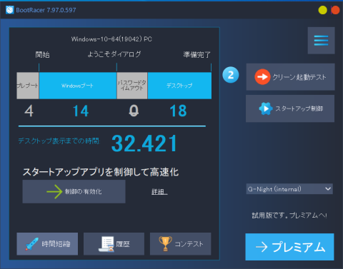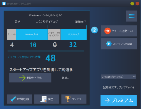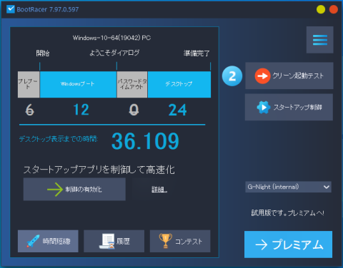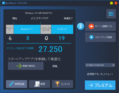 チェックには再起動にかかる時間を計測してくれるBootRacerを使用します。