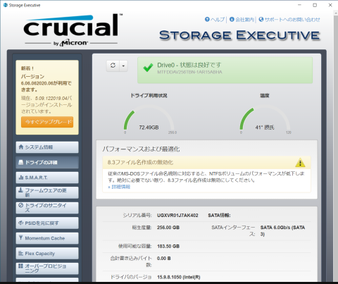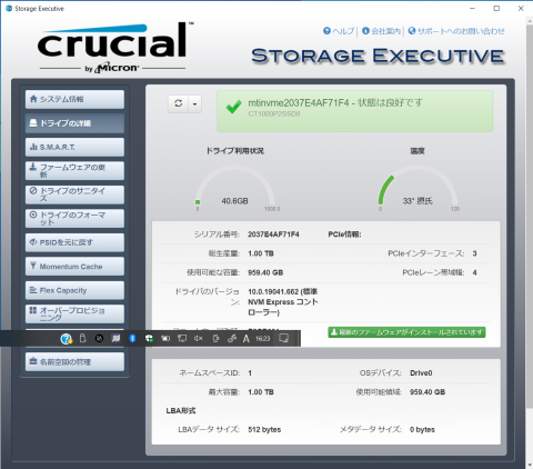 「Crucial Storage Executive」をインストールしなくても快適ですが、インストールすることで、より快適になります。