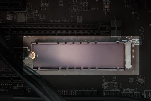 設置するのはメインマシンとしているマウスコンピュータの「DAIV」です。使用している PC には M.2 スロットが2つあり、1つは起動ディスクで埋まっているため、空いていたところに設置。マザーボード直結のため、インターフェースに影響を受けにくいと思います。レビューするにあたって迷ったのですが、僕の場合はシールド(ヒートシンク)を付ける方がデフォルトなので一応シールドも付けました。この PC は水冷式のため今までエアフローを把握しようとも思っていなかったため、なるべく流体の邪魔をしない平版のものを選びました。