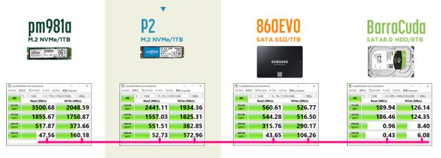 「順次読み取り 最速2,400MB/秒」がメーカー広告での売り文句であり、規則正しい連続したデータの読み取りが得意のようです。