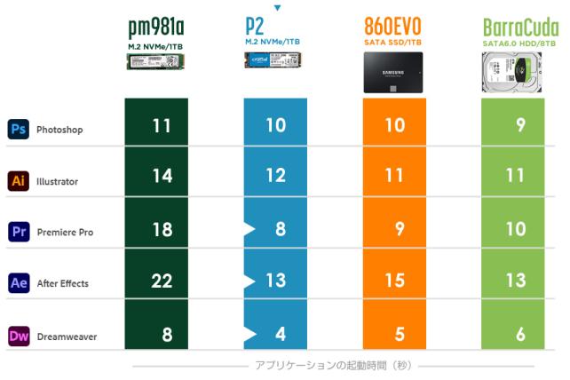クリエイターが最も使用しているであろう Adobe 系アプリの起動時間を計測してみました。起動するまでの時間(秒)なので数字が小さいほど良いです。