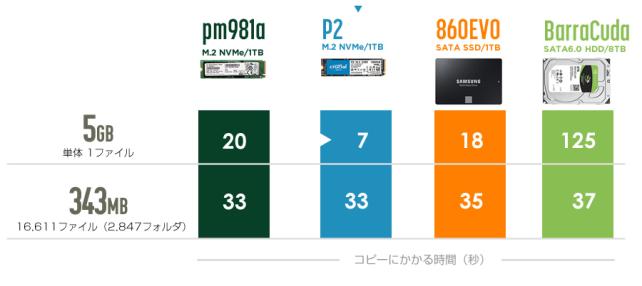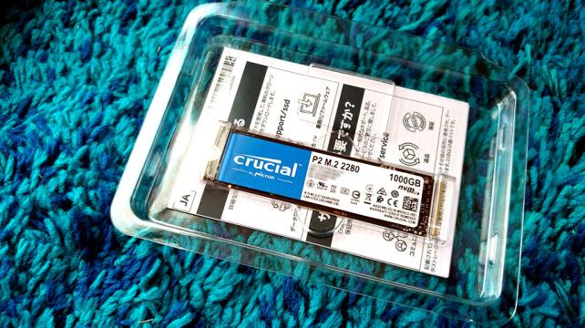 作業を時短できる高速性がお手頃価格で手に入るというところで Crucial P2 1TB PCIe M.2 2280SS SSD をおススメします。
