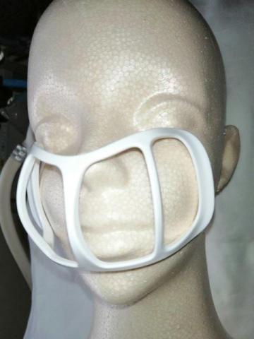 鼻の部分で保持しない形状のマスクフレームです。