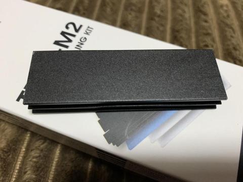 M.2のコネクターや、固定用ネジの切り欠きに被らないように、熱伝導シートを介してSSD本体と密着させます。