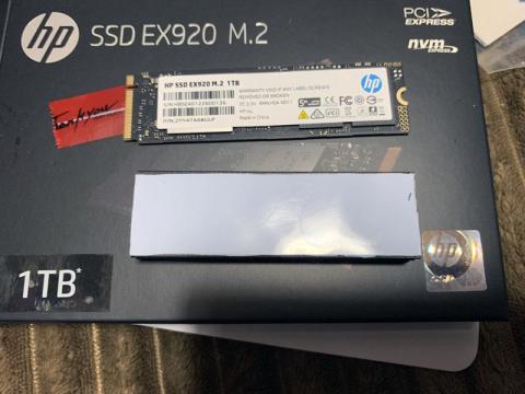 それでは実際にSSDに装着することにしましょう。今回取り付けるSSDはhp製SSD EX920 M.2 1TBモデルです。