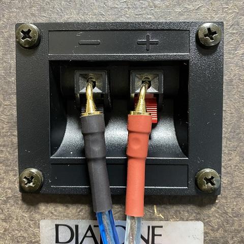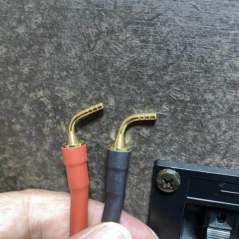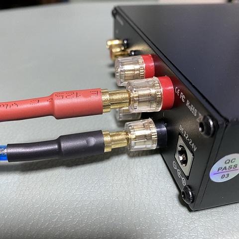 アンプ側はバナナプラグ。ズボッと刺すだけ。オイルが塗布されているみたいにヌルっと入ります。