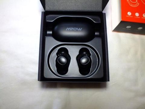 バッテリー内臓のケースと、イヤホン本体が分かれて仕切りに入っています。