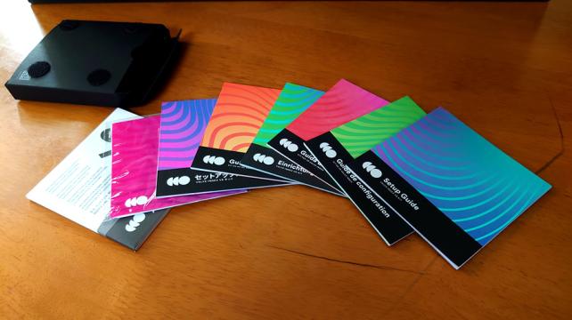 中身はマニュアル。カラフルな冊子がたくさんあり、こんだけ読むのか、とげんなりしましたが、読む必要があるのは1色だけ。これ各言語ごとに用意されているだけで、日本語のものを1冊読めばいいだけです。