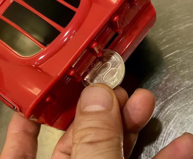 コインを入れないとチョコが出ない などという高等な仕掛けはありません ただの貯金箱