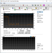 温度はちょっとやばいかもしれません。アップしたグラフは、ATTOをかけたときの値ですが、サーマルの影響が出ているのかも。後日ヒートシンク付きでもやってみたいと思います(HDTuneで200G書き込んだときの落ち込みも熱かも)