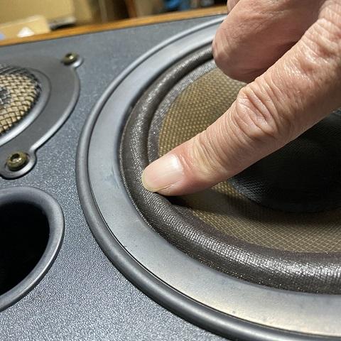 コーン紙まで塗ると染みになったり、コーン紙を痛めてしまうので慎重に塗って乾かします。薄く塗って繰り返し、この作業を週に1~2回。時折エッジを指で押さえながらマッサージ。数週間掛けて繰り返しました。ドライヤーで温めると良いとの事でしたけど、冬場でもあるし温めたり冷やしたりするのが嫌で常温で実施しました。その分時間を掛けました。