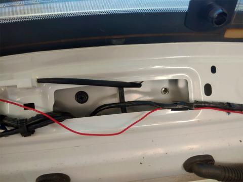 純正スポイラーの棒は穴に通せばその状態でリアゲートをあけてもスポイラーがずれないのでボルトを固定しやすい。