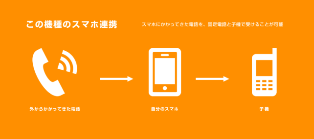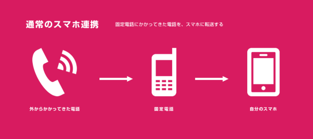 普通の機種は、固定電話→スマホ。自宅を留守にしている時でも固定電話かかってきた通話回線を、手持ちのスマホに転送してくれるという機能。