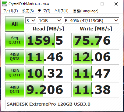 それでも、スティック型のUSBストレージとしては手持ちでは一番速かったこちらに比べると