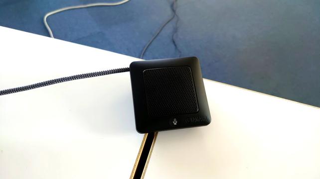 唯一、マイクの性能だけ難なのですが、オプションの収音マイクを追加すれば、さらに広い空間から声を広げるので広い会議室にも対応できます。音のスペシャリストであるヤマハならではの設計ですね。