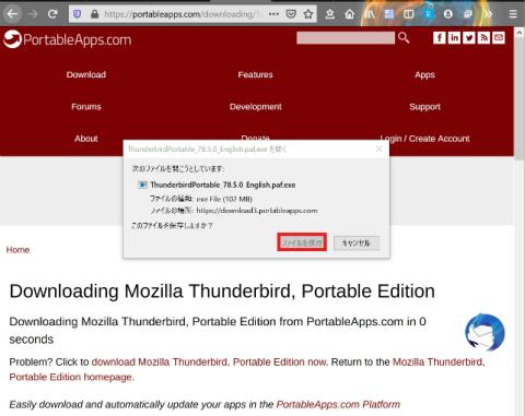 ダウンロードした、ThunderbirdPortable_ 78.5.0_english.paf.exeをクリックします。