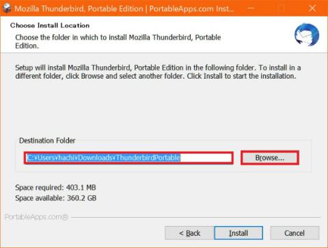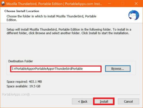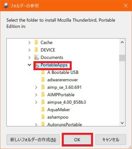 Apps\PortableApps\ThunderbirdPortableを指定します。