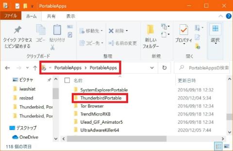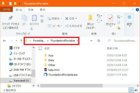 (TunderbirdPortableと言うディレクトリーが出来ている)
