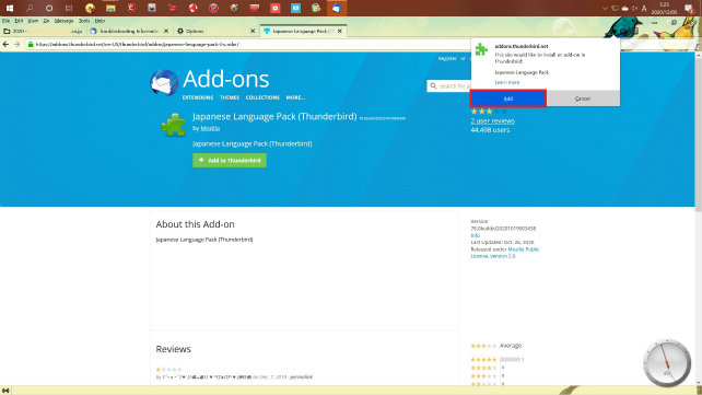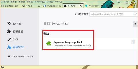 「ツール」-「アドオン」で言語パックが有効になっているのを確認。