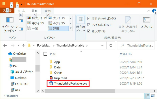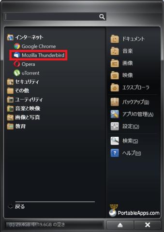 専用のランチャーがあればそこから、無ければ実行ファイルのThunderbirdPortable.exeをクリック。