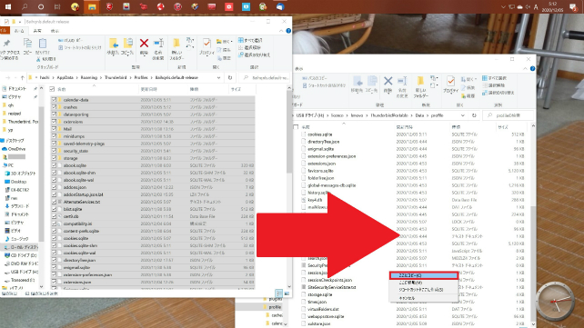 ポータブル版のプロファイルフォルダーの中身をすべて上書き。