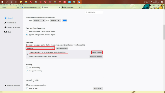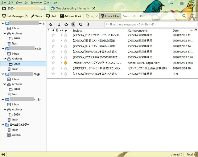 迷惑メールの対策が目的で、久し振りにMozilla Thunderbirdのインストール版を使い始めました。