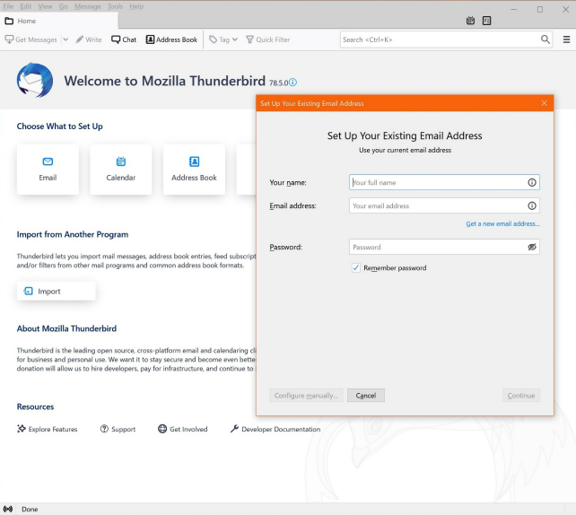 Mozilla Thunderbird, Portable Edition Version 78.5.0 です。