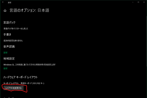 - ハードウェアキーボードレイアウトのセクション、「レイアウトを変更する」をクリック