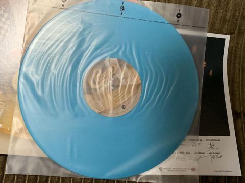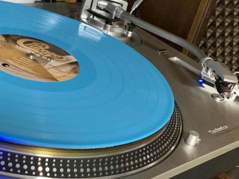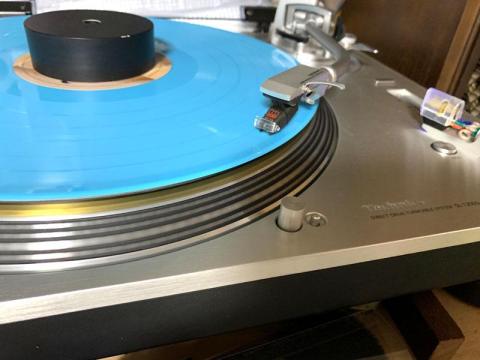 盤面はターコイズブルーという、何故選ばれたのかよく判らないカラーリングとなっています。実はもう一種類半透明のオレンジも用意されていて、そちらもオーダーしたはずなのですが、このターコイズブルーが2枚届いてしまったのです。まあ、半透明盤よりはただのカラー盤の方が音質面では有利だと思いますが。