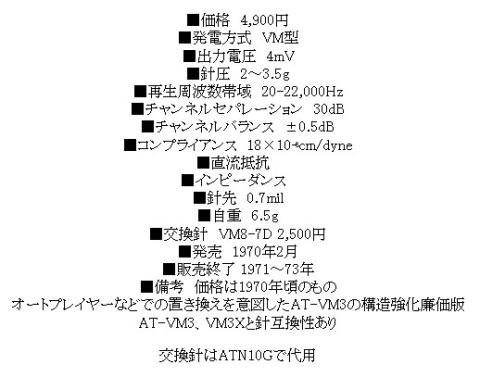 発売は1969年頃です ヤフオクでもAT-10はよく見かけますがAT-VM8はあまり無いようです 古すぎますね 50年前です よくぞ残っていました 外形ですが、オーディオテクニカのAT系は”切っても切っても金太郎飴” 的な外見のカートリッジです。